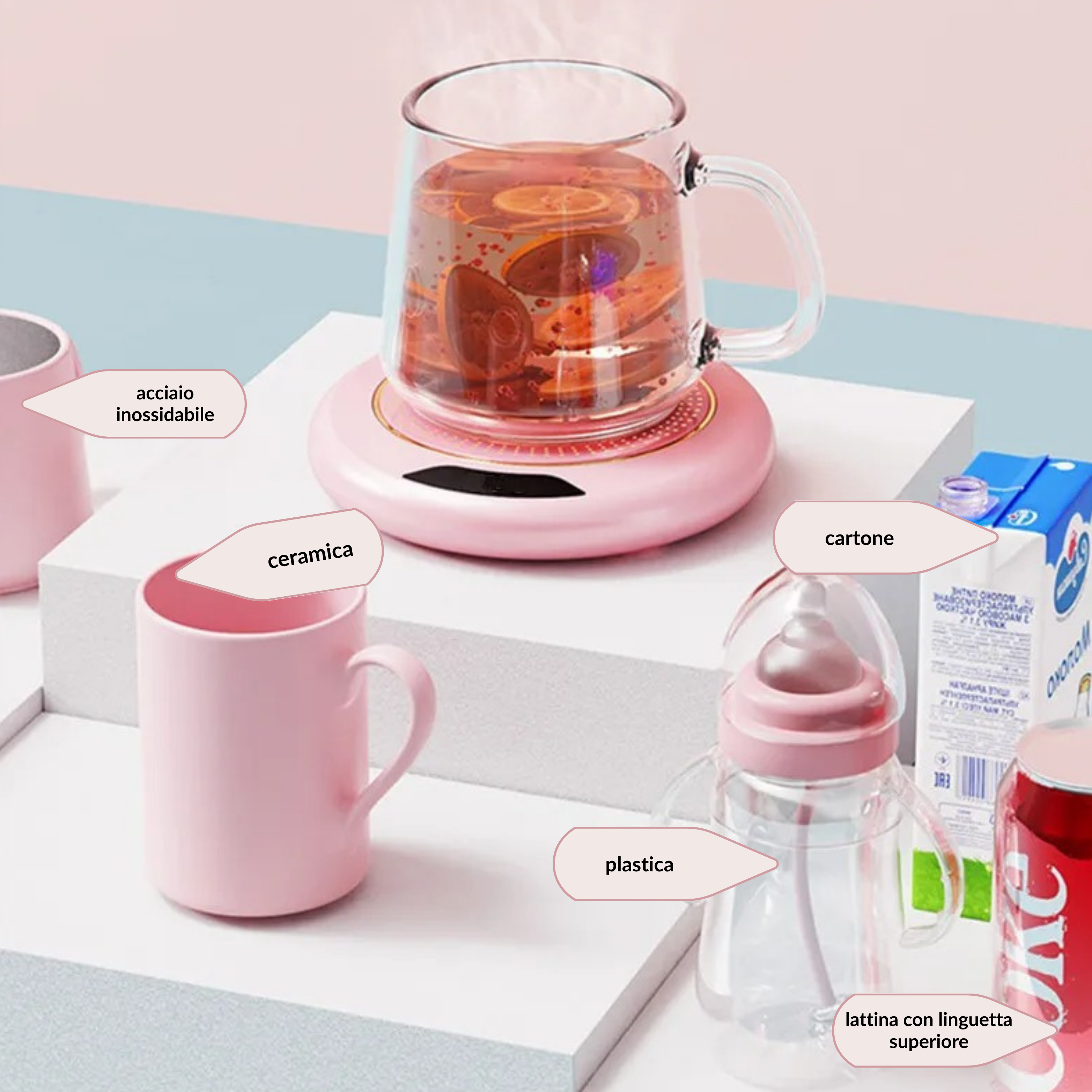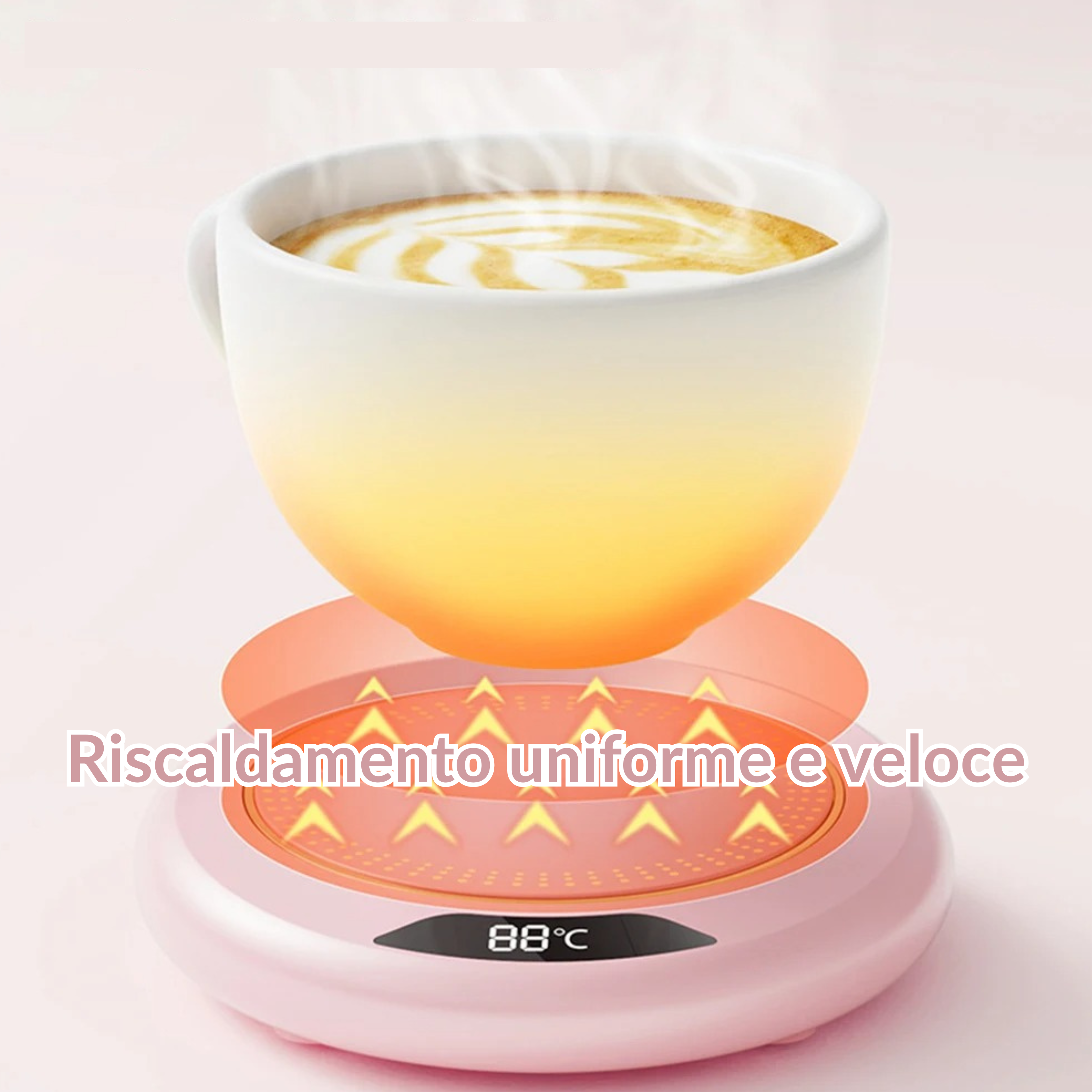 Lo ScaldaTazza mantiene la bevanda a una temperatura costante di circa 55°C, perfetta per gustare caffè, tè o tisane sempre caldi ma mai bollenti.